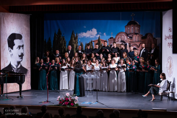 05.11.2023.Пјесничко вече „На Дучићевом путу“, пјесници у част кнезу пјесникаТрадиционалном светковином стиха „На Дучићевом путу“ вечерас је у позоришној сали Културног центра Требиње завршена тродневна манифестација „Дучићеве вечери поезије”. Добродошлицу пјесницима који су „На Дучићевом путу“, у граду под платанима, пожелио је дјечји хор „Бубамарац“ композицијом „У Требињу, лијепом…